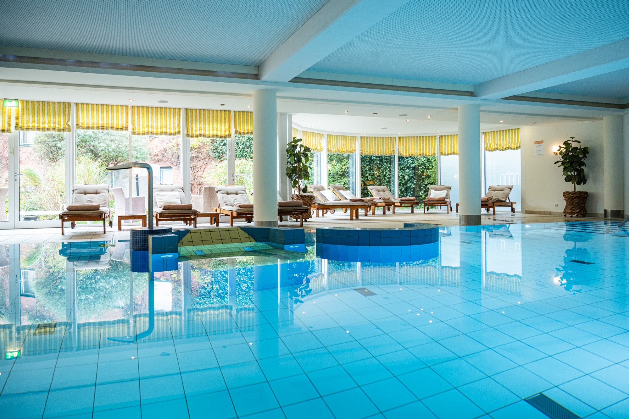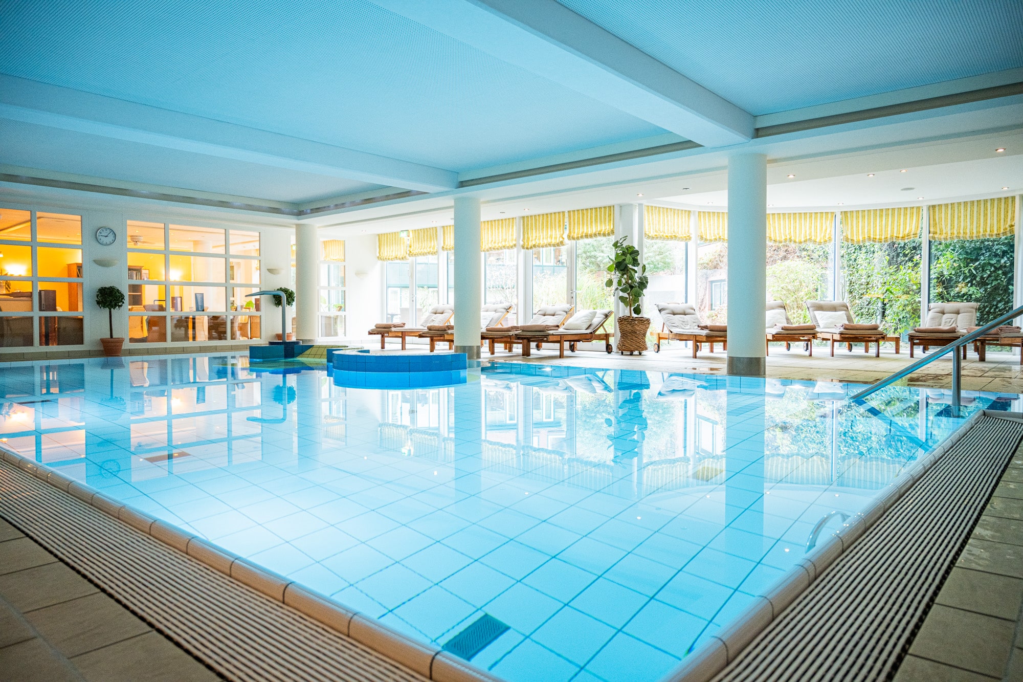 Das Herzstück für viele Gäste ist der Pool, der sich ideal dazu eignet, ein paar ausgiebige Schwimmzüge zu tätigen oder einfach durch das Wasser zu gleiten. Für die anschließende Entspannung stehen Dir zahlreiche Liegen zur Verfügung. Je nach Wetter beziehungsweise Jahreszeit kannst du dich auch im Außenbereich erholen und einkuscheln. Oft sind es die kleinen, manchmal nur kurzen Momente, die zählen: In Zeitschriften blättern, einfach nur deinen Gedanken nachhängen oder einfach den Blick schweifen lassen.